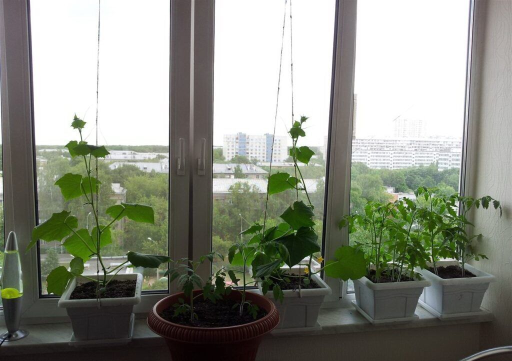 Огуречная грядка на подоконнике в феврале